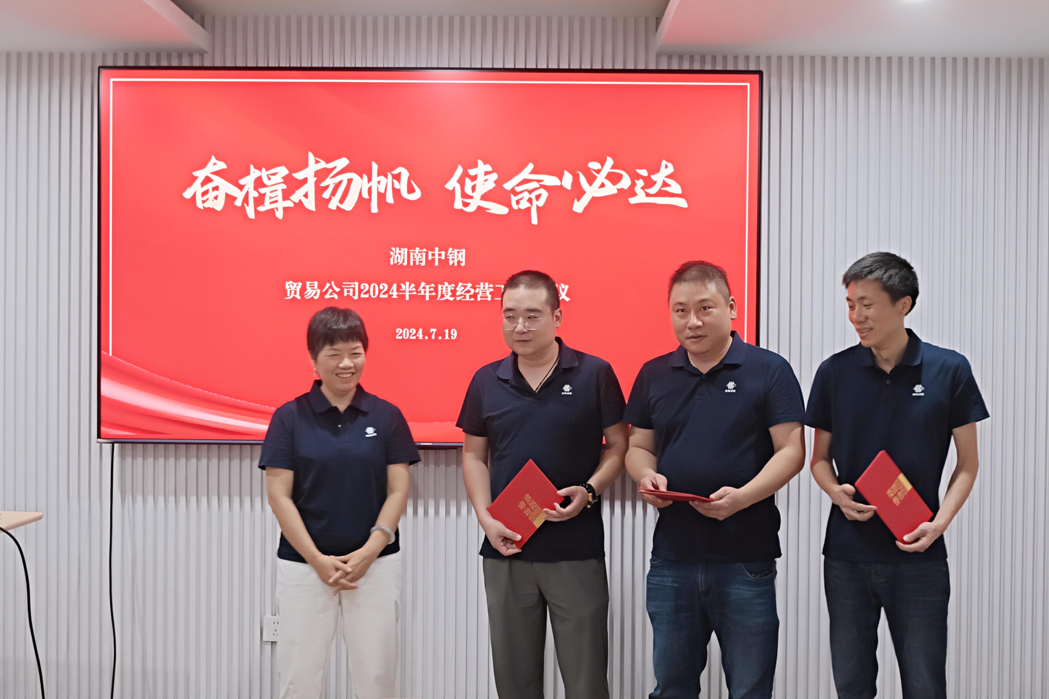 2024年7月19日,湖南中钢贸易公司在集团总部大会议室召开2024年半年度经营工作会议。集团公司总部领导、总部职能部门负责人、贸易公司全体人员参加了此次会议。